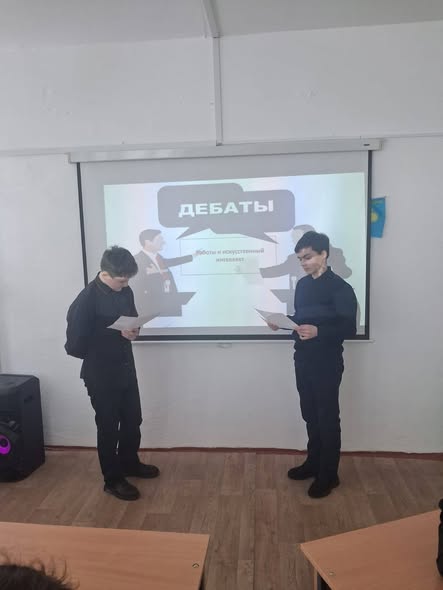 В рамках проекта «Ұшқыр ой алаңы» с учащимися 8 класса были проведены дебаты на тему «Роботы и искусственный интеллект». В ходе обсуждения школьники рассматривали преимущества и возможные риски развития современных технологий, учились аргументировать свою позицию, критически мыслить и уважать мнение оппонентов.
