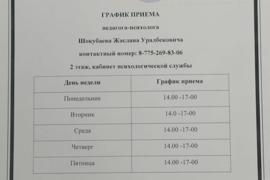 Педагог-психологты қабылдау кестесі