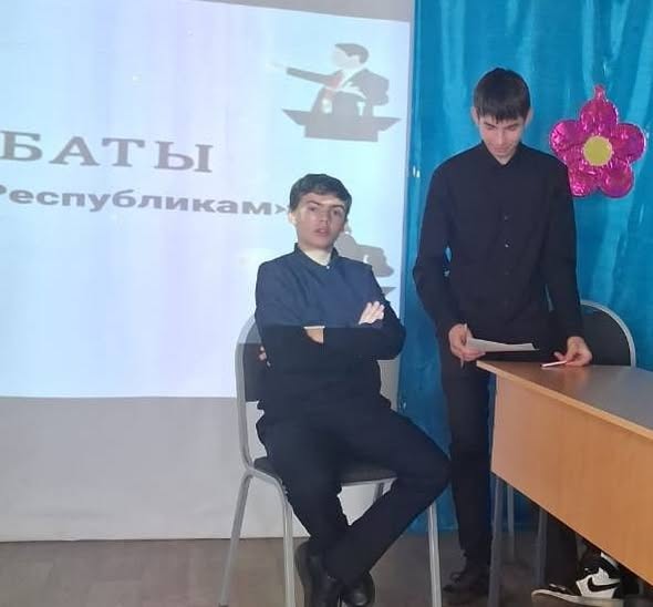 В рамках плана мероприятий ко Дню Республики Казахстан с учащимися 8 класса проведён дебатный турнир «Менің Республикам».