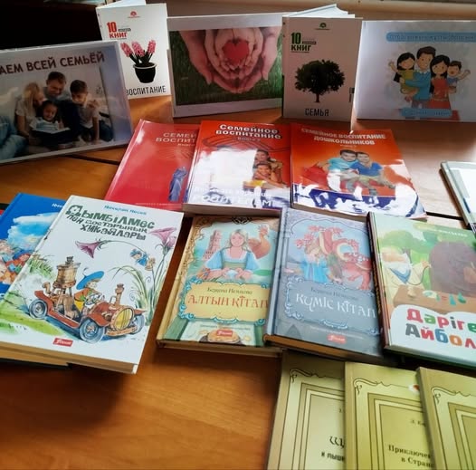 #Адалазамат #Балалар_кітапханасы В рамках проекта «Балалар кітапханасы» в школьной библиотеке оформлена выставка ко Дню семьи " Читаем всей семьей". Цель выставки — формирование у учащихся ценностей семьи, уважения к матери и воспитание доброты и любви