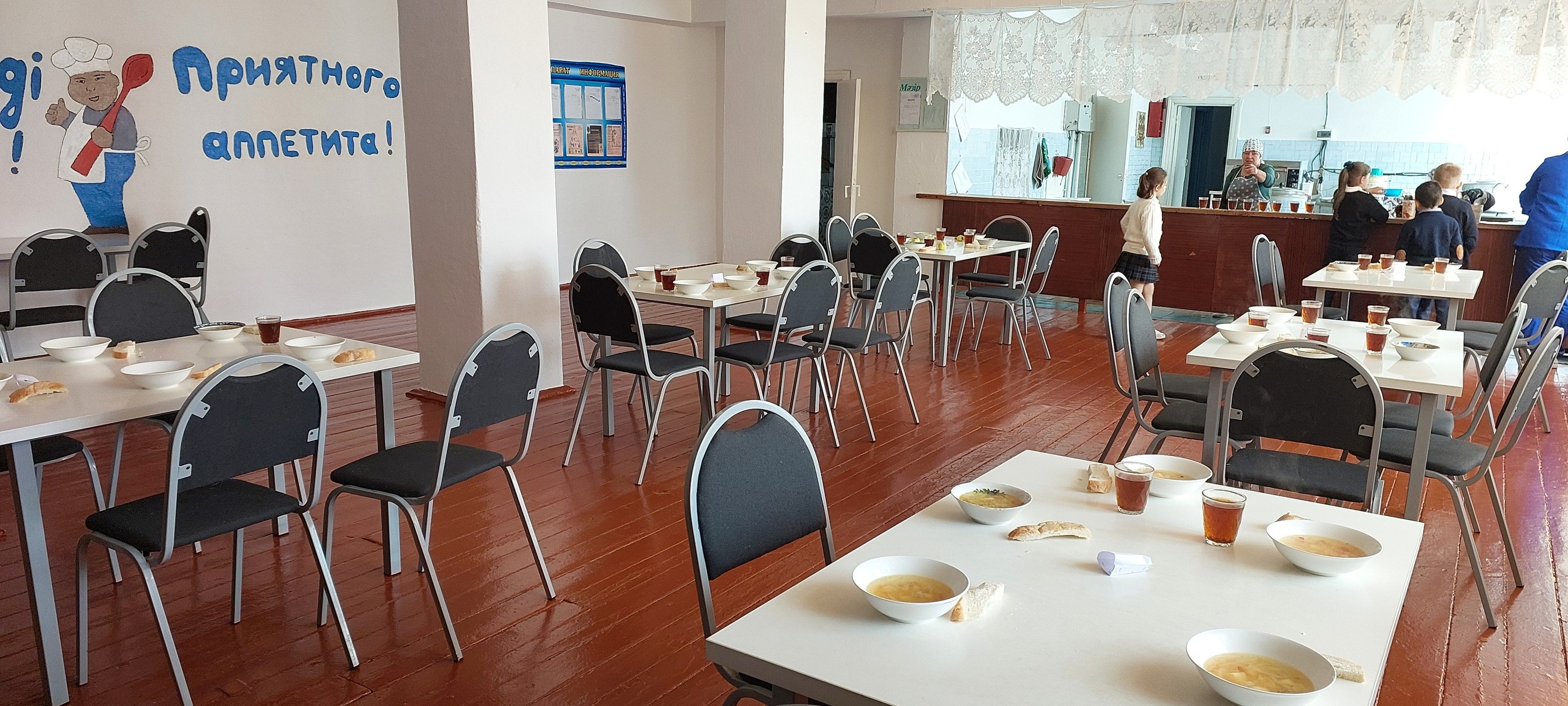 В школе с начала учебного года организовано горячее питание для учащихся ИП "Крафт". Школьная столовая рассчитана на 60 посадочных мест, учащиеся питаются согласно графика, организовано дежурство администрацией и педагогами . Блюда готовятся по утвержденному меню, ведется контроль бракеражной комиссией.