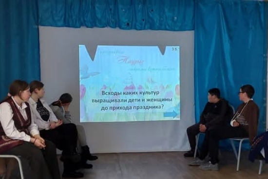 Согласно плану работы по празднованию Наурыз- мейрамы с учащимися 6-7 классов проведена викторина на тему: «Обычаи и традиции казахского народа» Ребята с интересом отвечали на вопросы, касающиеся национальных обычаев, праздников и исторических традиций