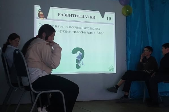 В рамках мероприятий к 80-летию Победы в ВОВ и военно -патриотического месячника "Патриот" с учащимися 7 класса проведена интерактивная игра: " Казахстан в годы ВОВ Казахстан - арсенал фронта" Цель: Закрепление знаний о роли Казахстана в годы Великой О