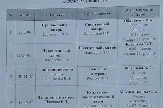 План мероприятий на летний период 2024-2025 учебный год