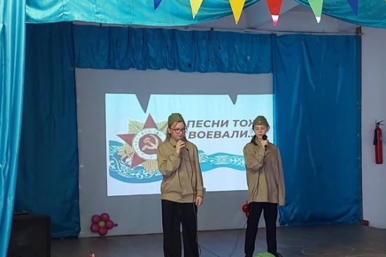 В рамках военно-патриотической акции "Патриот" с учащимися 1-11 классов прошел конкурс военной песни "А песни тоже воевали". Учащиеся исполняли песни военных лет ко Дню Великовой Победы.
